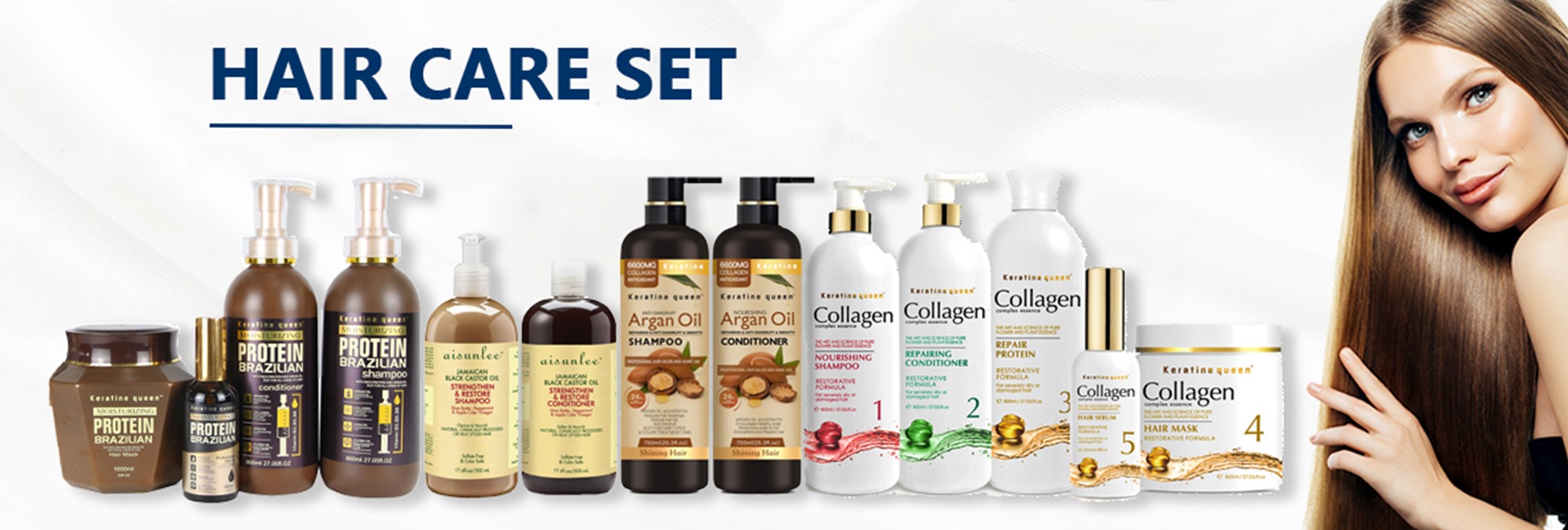 Toptan OEM Anti saç dökülmesi Keratin kollajen tamir besleyici şampuan kremi maske Serum saç bakımı setleri tüm saç tipleri